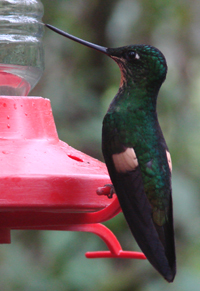 It was time to get back outside where we enjoyed some quality time at the feeders observing the antics of the hummingbirds. Cameras clicked like mad trying to capture the feathered gems in our midst. We experimented at how close we could actually get to the birds and found that if you stood still enough they would even land on you! It was an incredible afternoon and just a taste of birding in Ecuador. Juan told us that right now, one could see up to 65 species of hummingbirds at lodge feeders in Ecuador. We had seen 17 species today and some of us were already thinking about our next birding trip to see more of the amazing spectacle of hummingbirds in Ecuador!